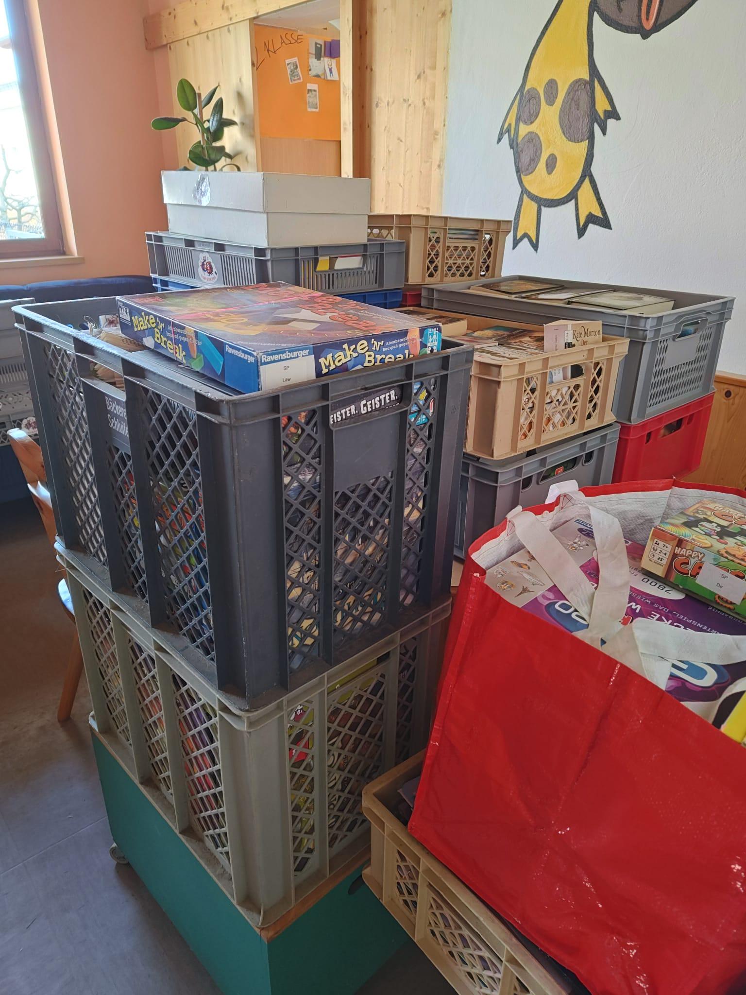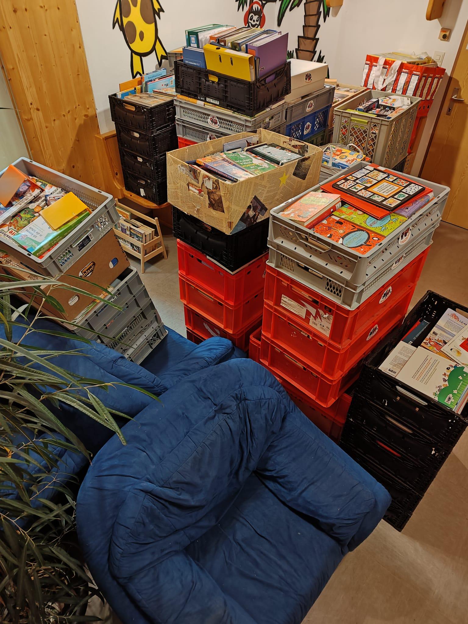 Auf einmal waren sie da - eine ganze Schar Kinder hat spontan geholfen, die Bücher vor dem drohenden Regen in die Container zu bringen. Vielen, vielen Dank an alle! Jetzt müssen wir nur noch einräumen - ein wenig putzen vielleicht auch noch. Und dann kann es wieder losgehen.
